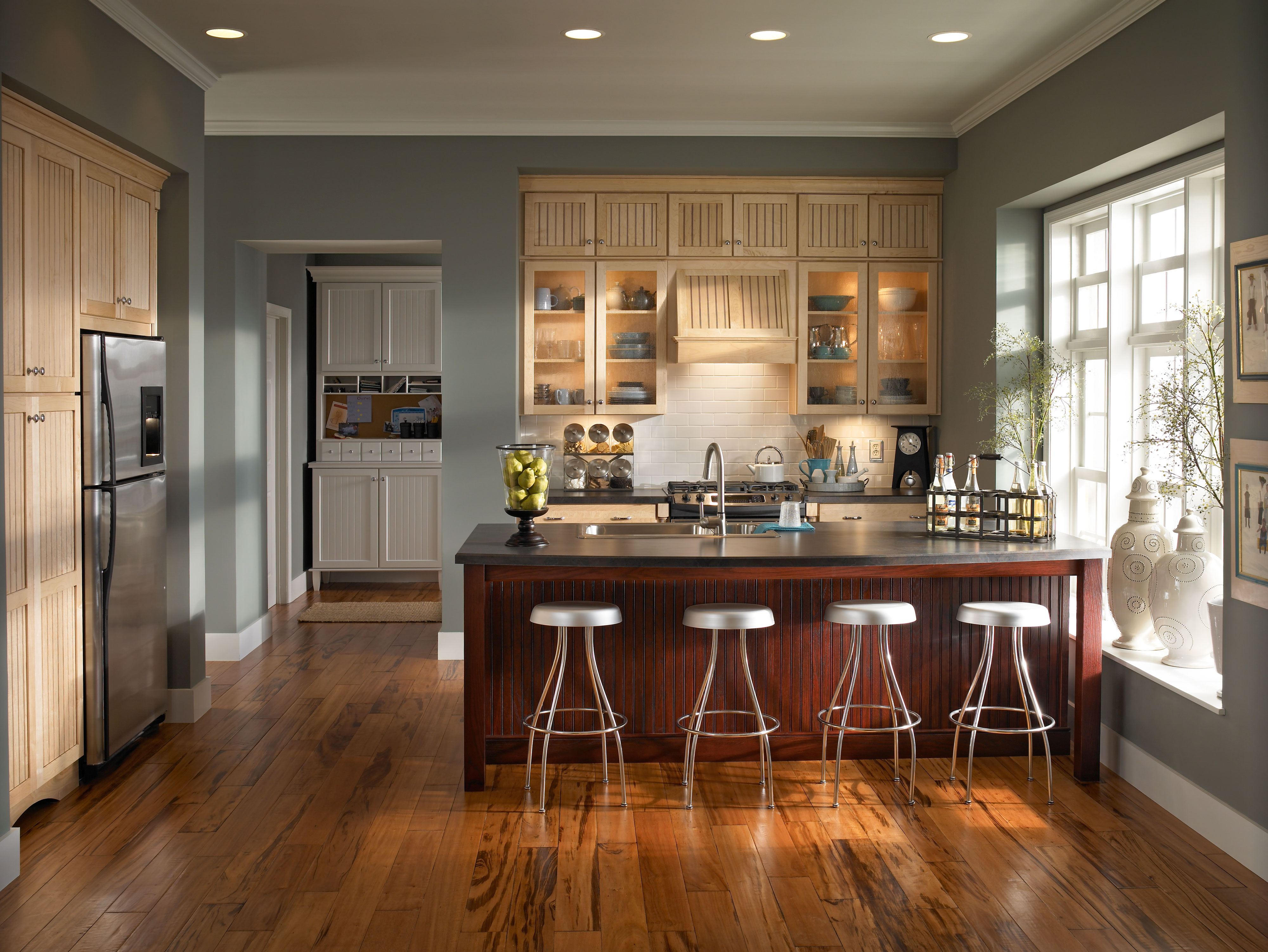 Construction Details Door features five piece square design with mortise and tenon solid wood frame and wide patterned beaded veneer center panel.Drawer front is solid wood, slab construction.Hinge is fully concealed.
